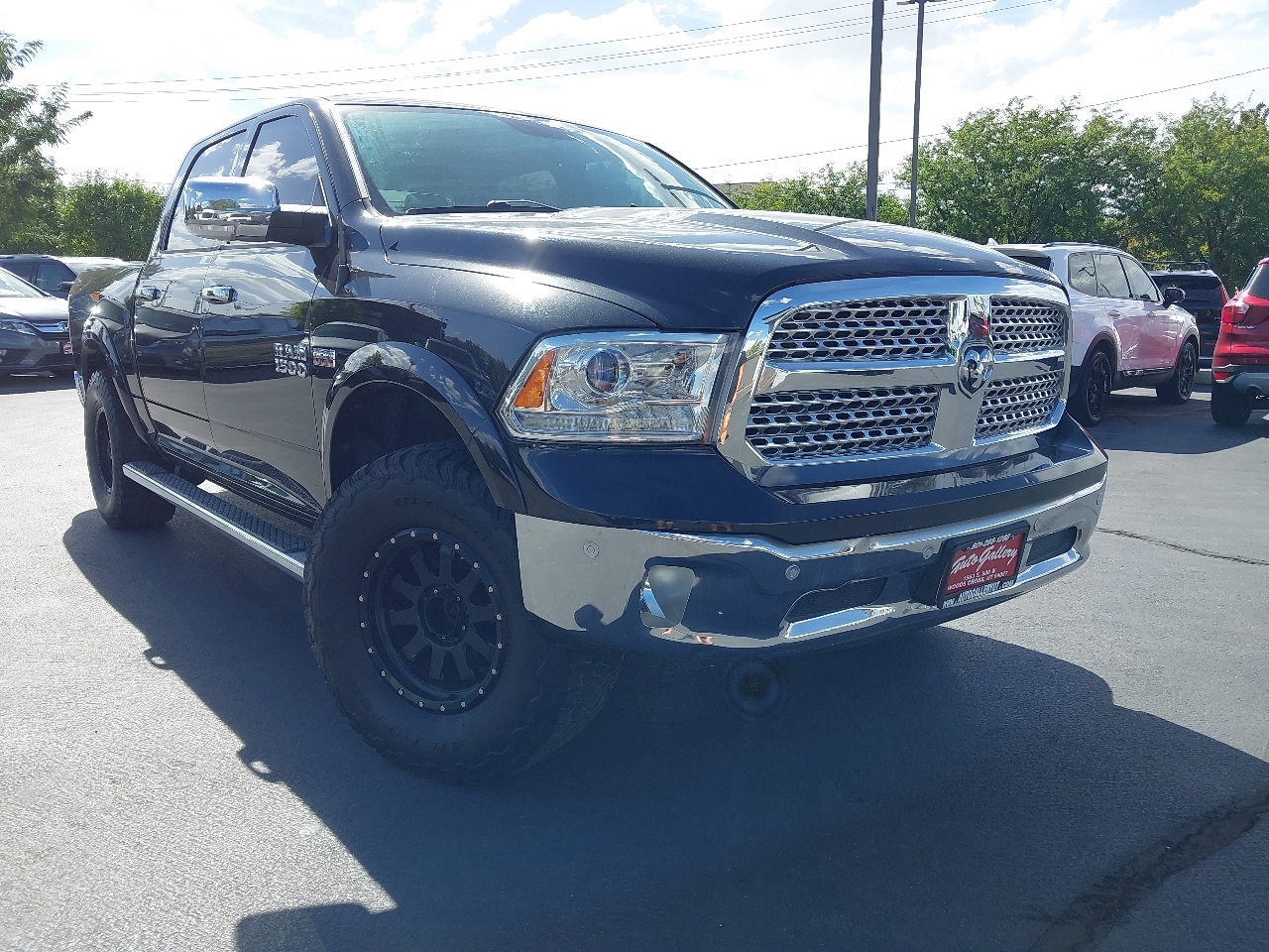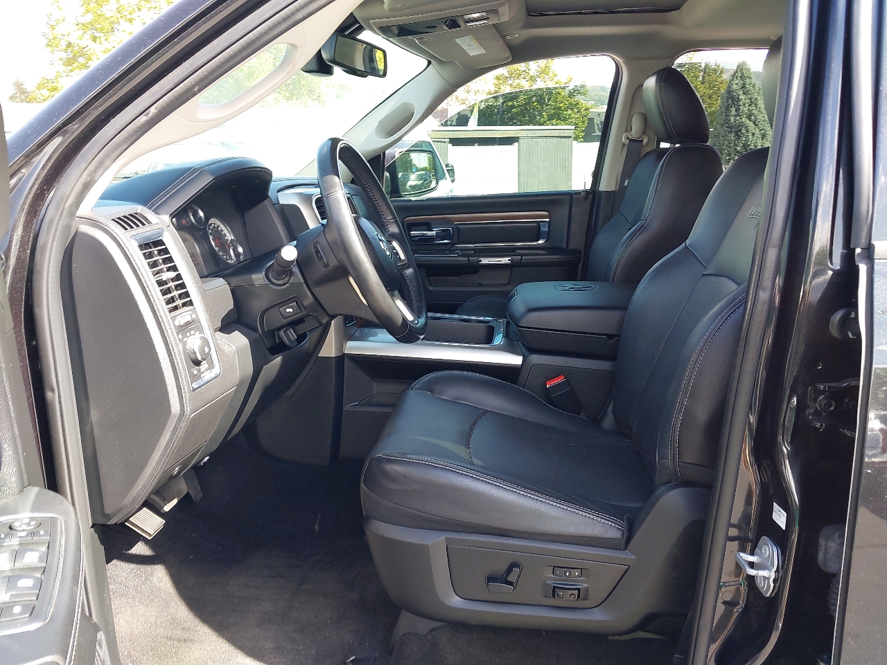 2017 RAM 1500 CREW CAB LARAMIE HEMI 4X4, black with black LEATHER, SUNROOF, wheels, NAVIGATION SYSTEM with rear BACKUP CAMERA, bluetooth connection with PREMIUM SOUND SYSTEM and steering wheel audio controls, a/c with climate control, front COOLED SEATS with front and rear HEATED SEATS and HEATED STEERING WHEEL, fog lights, keyless entry with keyless start, tinted windows, running boards, tow package, bedliner, and tons more!
