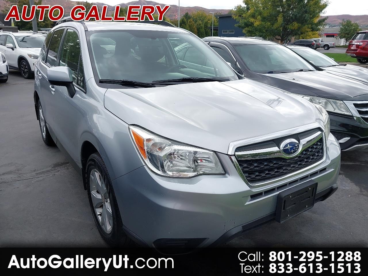 2015 SUBARU FORESTER PREMIUM AWD, silver with black interior, SUNROOF, wheels, BACKUP CAMERA, bluetooth connection with PREMIUM SOUND SYSTEM and steering wheel audio controls, HEATED SEATS, a/c with climate control, fog lights, keyless entry, tinted windows, luggage rack, and lots more!