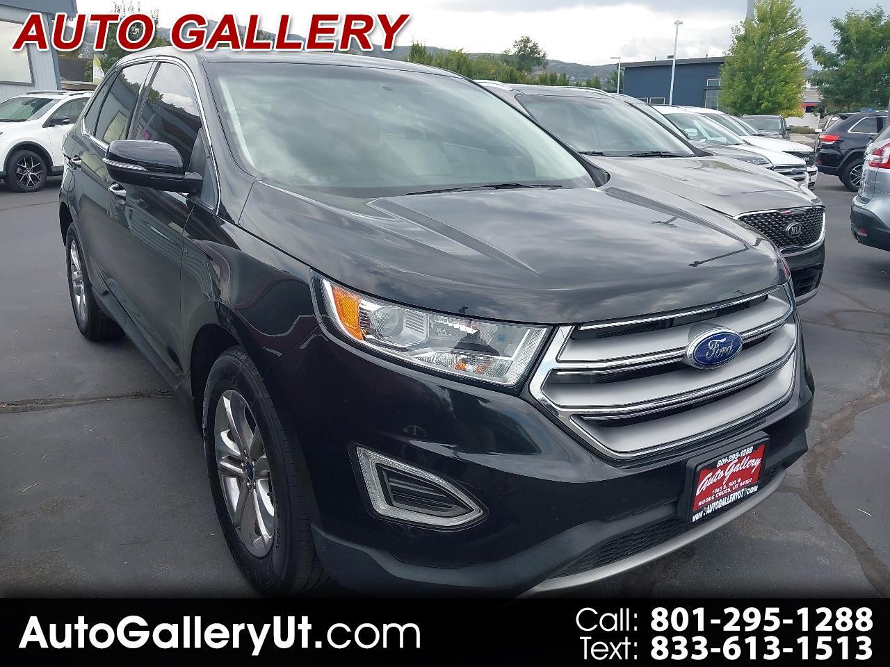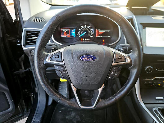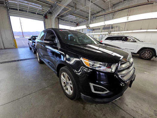 2016 FORD EDGE SEL AWD, black with black LEATHER, wheels, NAVIGATION SYSTEM with rear BACKUP CAMERA and side BLIND SPOT MONITORS, bluetooth connection with PREMIUM SOUND SYSTEM and steering wheel audio controls, a/c with climate control, cross traffic alert, HEATED SEATS, keyless entry with keyless start, tinted windows, and lots more!
