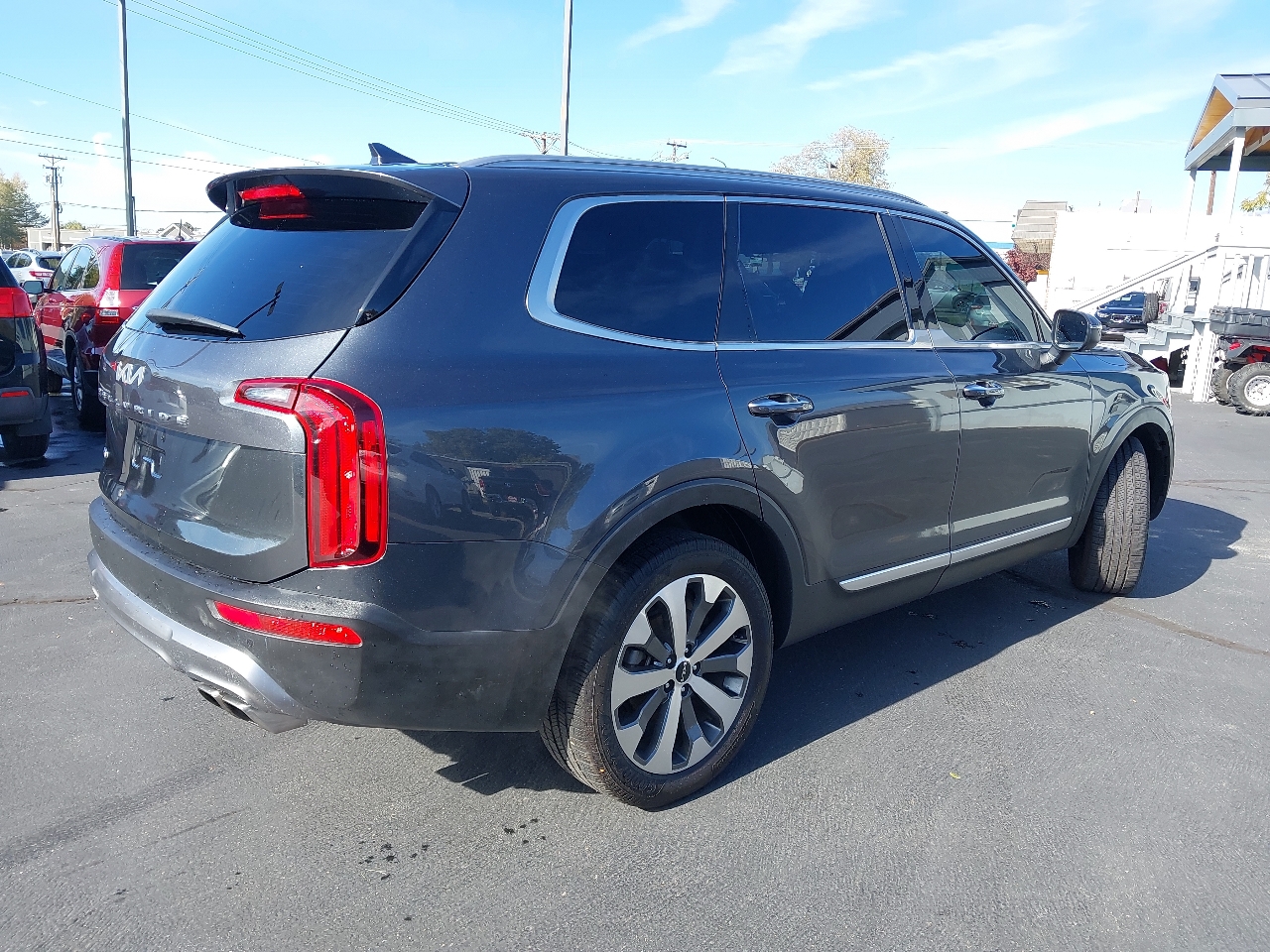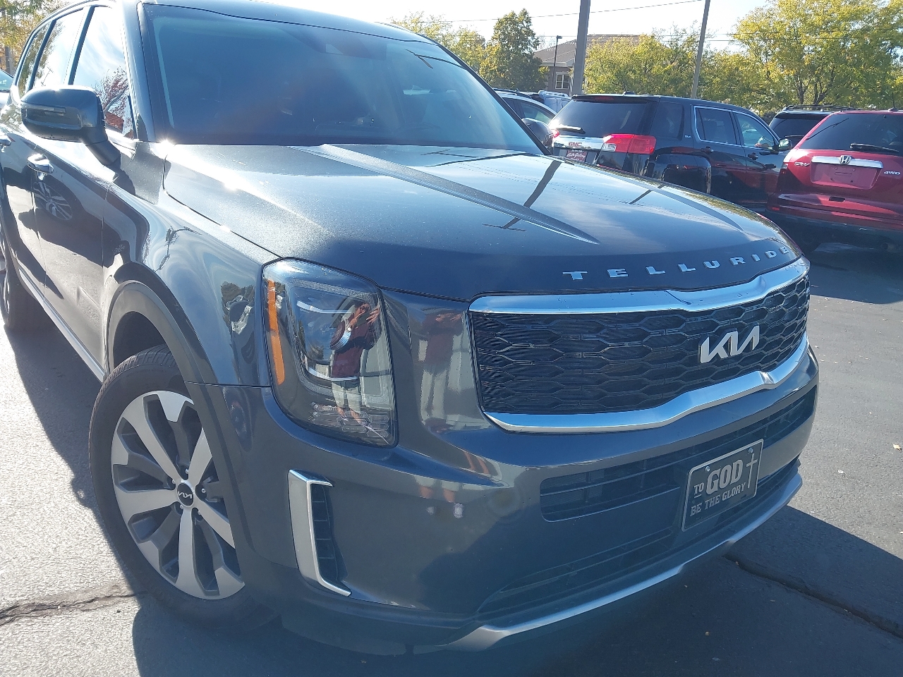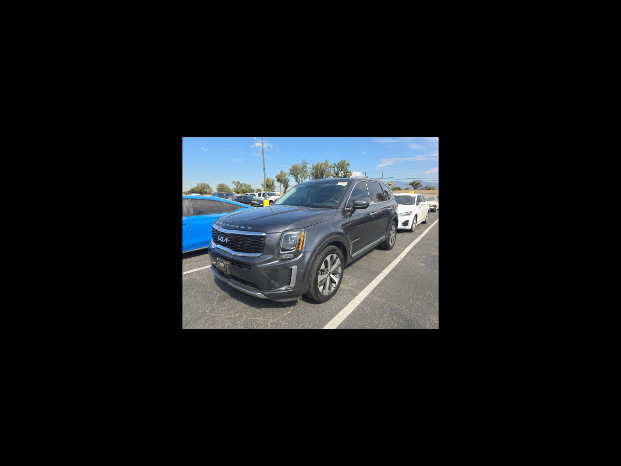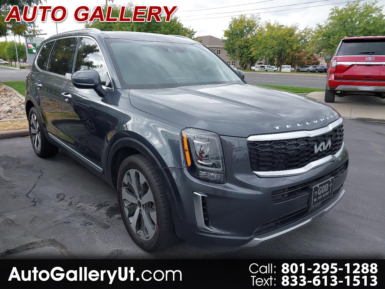 2022 KIA TELLURIDE S AWD, gray with black LEATHER, SUNROOF, wheels, NAVIGATION SYSTEM with rear BACKUP CAMERA and BLIND SPOT MONITOR with ADAPTIVE CRUISE CONTROL and LANE KEEP ASSIST with LANE DEPARTURE WARNING, rear 3RD ROW SEATS with middle BUCKET SEATS, bluetooth connection with PREMIUM SOUND SYSTEM and steering wheel audio controls, a/c with climate control and rear a/c, HEATED SEATS, cross traffic alert, keyless entry with keyless start, tinted windows, and tons more!