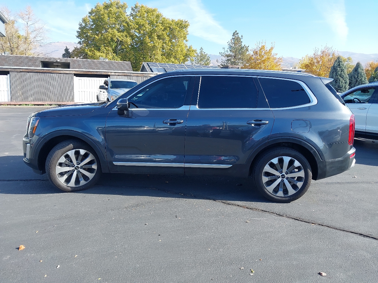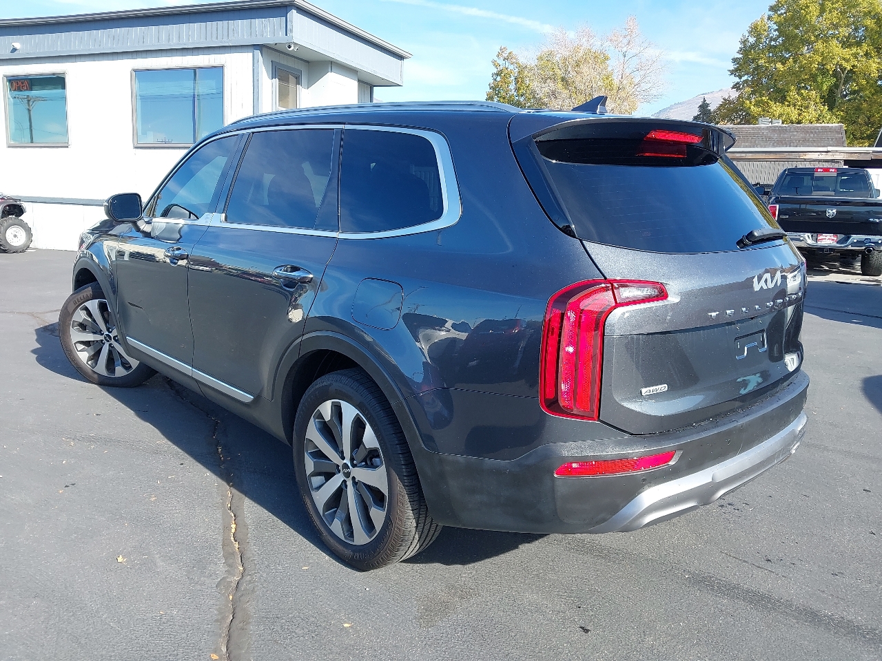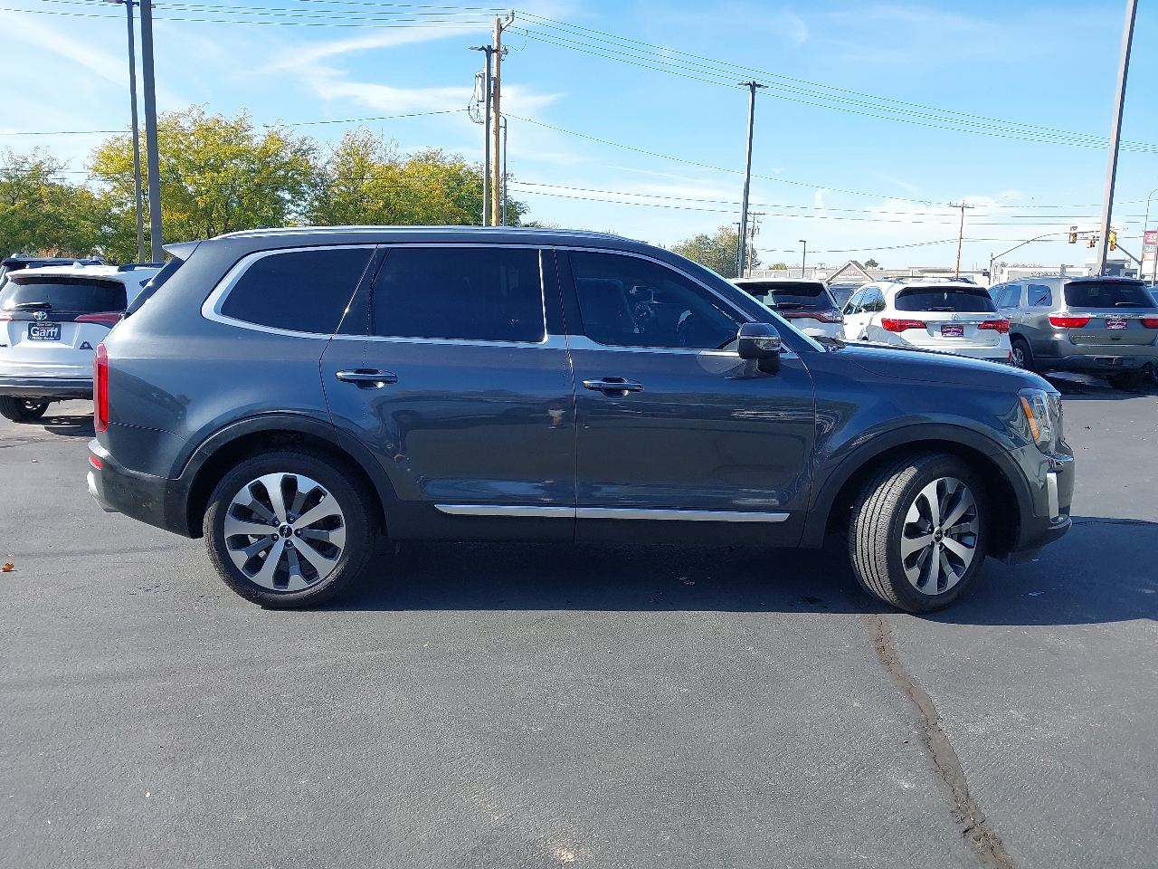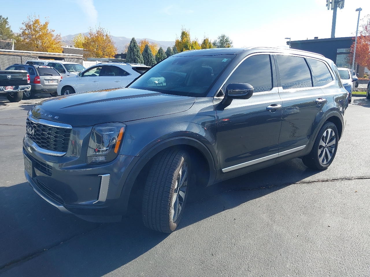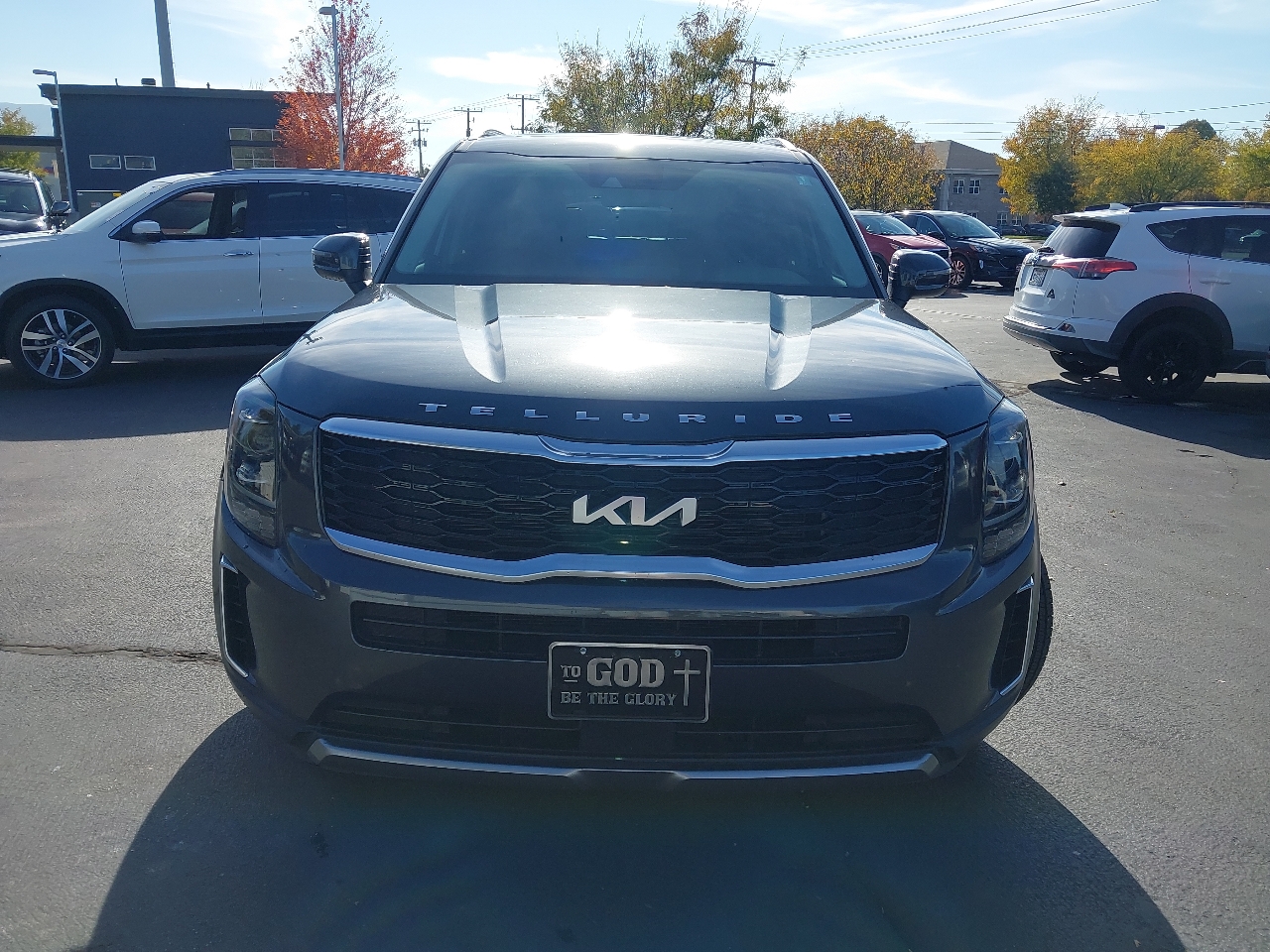 2022 KIA TELLURIDE S AWD, gray with black LEATHER, SUNROOF, wheels, NAVIGATION SYSTEM with rear BACKUP CAMERA and BLIND SPOT MONITOR with ADAPTIVE CRUISE CONTROL and LANE KEEP ASSIST with LANE DEPARTURE WARNING, rear 3RD ROW SEATS with middle BUCKET SEATS, bluetooth connection with PREMIUM SOUND SYSTEM and steering wheel audio controls, a/c with climate control and rear a/c, HEATED SEATS, cross traffic alert, keyless entry with keyless start, tinted windows, and tons more!