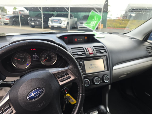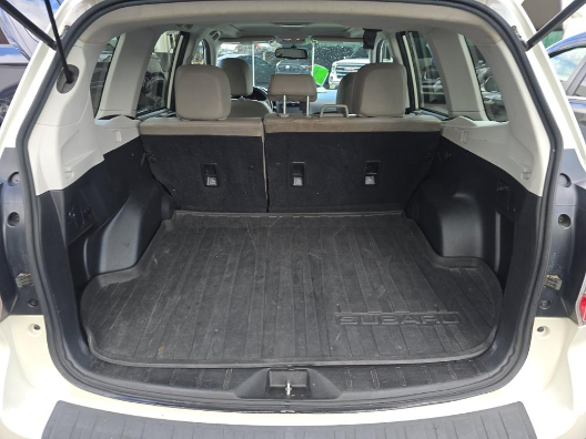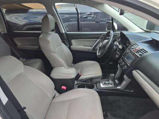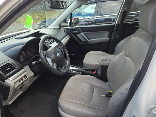 2015 SUBARU FORESTER LIMITED AWD, white with gray LEATHER, SUNROOF, wheels, NAVIGATION SYSTEM with rear BACKUP CAMERA, bluetooth connection with PREMIUM SOUND SYSTEM and steering wheel audio controls, HEATED SEATS, a/c with climate control, fog lights, keyless entry, tinted windows, luggage rack, power liftgate, and so much more!
