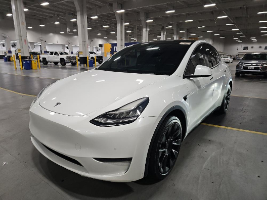 2020 TESLA MODEL Y LONG RANGE AWD, white with black LEATHER, SUNROOF, wheels, NAVIGATION SYSTEM with ADAPTIVE CRUISE CONTROL and BACKUP CAMERA with BLIND SPOT MONITOR and LANE KEEP ASSIST with LANE DEPARTURE WARNING, bluetooth connection with PREMIUM SOUND SYSTEM and steering wheel audio controls, a/c with climate control, cross traffic alert, fog lights, front and rear HEATED SEATS, keyless start, power liftgate, BLACKED OUT, tinted windows, and tons more!